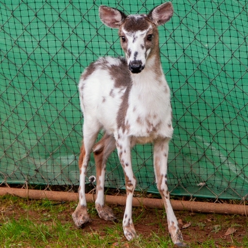 Piper came from Happy Tails rescue. He needed deer friends around his age and a forever home. He is the newest piebald deer.